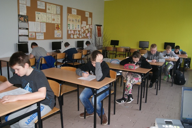 Uczniowie klas V i VI byli uczestnikami Konkursu Wiedzy o Ruchu Drogowym, który odbył się 24 marca. Warunkiem przystąpienia do konkursu było posiadanie Karty Rowerowej. Jedenastu uczestników zmagało się z pytaniami zawartymi w teście, sprawdzając wiedzę na temat zasad ruchu drogowego. Druga część to jazda techniczna na rowerze po wyznaczonym torze przeszkód.