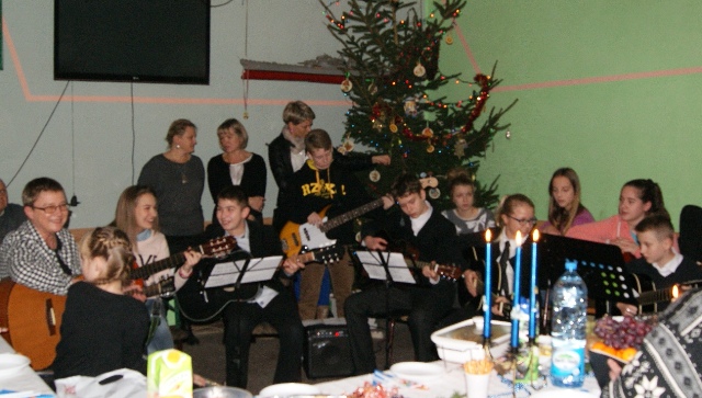 Uczniowie pod opieką pani Marioli Gradek uczestniczyli w spotkaniu wigilijnym mieszkańców Baczysławia.