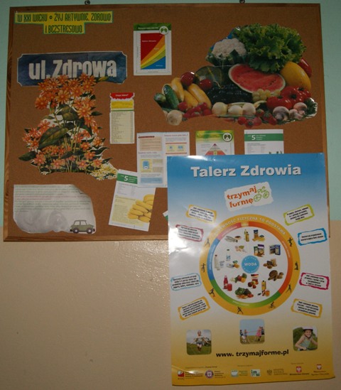 Uczniowie naszej szkoły mogą oglądać gazetki wykonane na korytarzach szkoły oraz w stołówce szkolnej, które informują o zdrowym trybie życia.