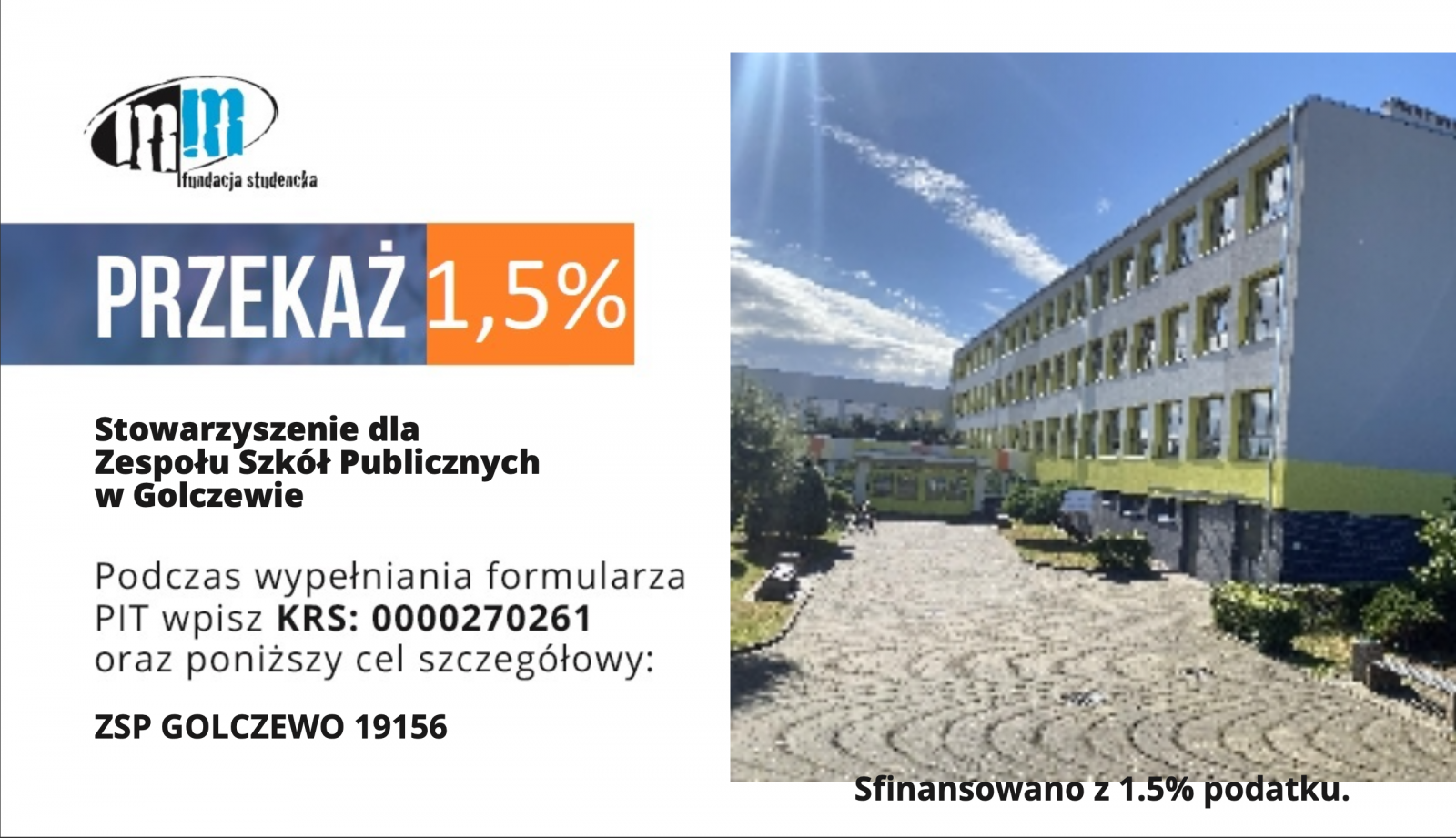 Przekaż 1,5% podatku na rzecz Stowarzyszenia dla Zespołu Szkół Publicznych w Golczewie