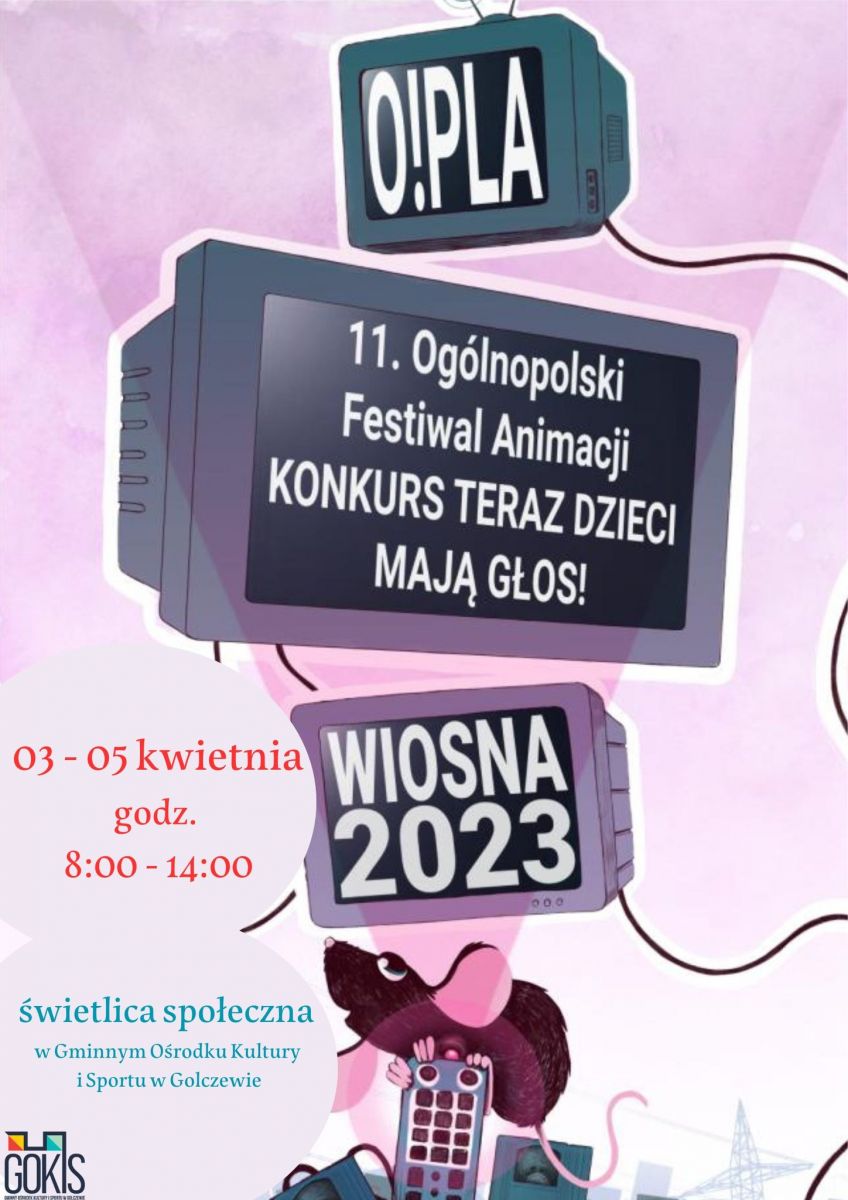 W dniach 03 - 05 kwietnia w Gminnym Ośrodku Kultury i Sportu w Golczewie odbędą się pokazy filmów w ramach 11 Ogólnopolskiego Festiwalu Animacji Polska Animacja - Festiwal Animacj. Uczniowie naszej szkoły wezmą w nim udział już po raz trzeci!