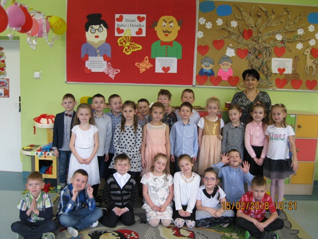 Zabawa, śmiech i taniec towarzyszyły dzieciom w zerówce pani Doroty Szkutnik. Dzieci pięknie recytowały wiersze, śpiewały piosenki i tańczyły dla swoich babć i dziadków. Zaproszeni gości chętnie brali udział w konkursach. Każdy z nich za udział w konkursie otrzymywał dyplom super babci lub super dziadka.