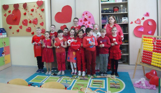 Z okazji święta Walentynek w naszej szkole odbył się konkurs „Walentynkowa prezentacja klasy”. Zadaniem uczniów poszczególnych klas było dekorowanie sali, zaprezentowanie koloru czerwonego i różowego w postaci ubioru, elementów dodatkowych a także wymyślenie hasła związanego ze świętem.