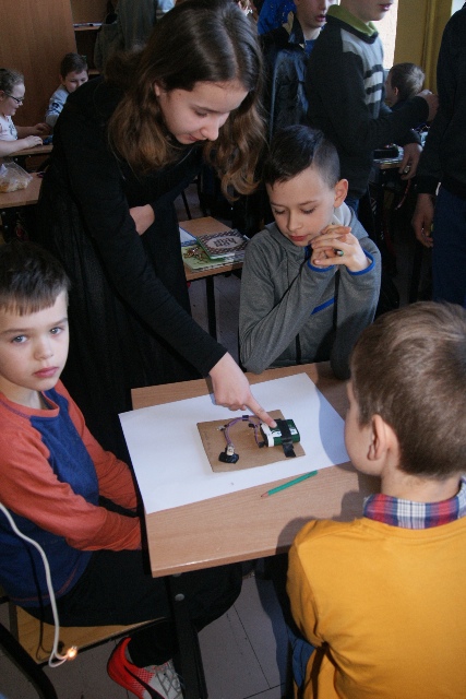 Uczniowie klas szóstych wcielili się w rolę nauczyciela i prowadzili zajęcia w klasach I-III. Tematem zajęć były obwody elektryczne. Przygotowane projekty na zajęcia techniczne posłużyły jako element przeprowadzanych doświadczeń z prądem. Każdy zespół szóstoklasistów miał za zadanie przedstawić swój projekt i omówić, z jakich elementów się składa: przewody, źródło prądu, żarówka lub silniczek, włącznik.