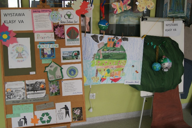 Klasa Va w nietypowy sposób powitała wiosnę. Przygotowała wystawę pt. „Ocalmy Ziemię”. Znalazły się na niej plastyczne prace uczniów, wiersze o tematyce ekologicznej, plakaty oraz modele kuli ziemskiej. Wystawę wzbogacała swoimi zbiorami biblioteka szkolna; zaprezentowała czasopisma o tematyce ekologicznej „Eko i my” oraz „Ekonatura”, które są dostępne w czytelni.