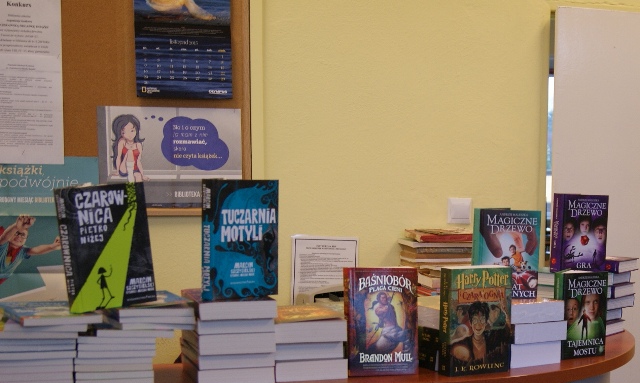 Pierwsze nowe książki z programu „Książki naszych marzeń w bibliotece szkolnej”. W dniu 25 listopada z wielką radością rozpakowaliśmy pierwszą paczkę z książkami, po które mamy nadzieję z przyjemnością sięgną czytelnicy biblioteki. Na naszych półkach znajdzie się kilka poczytnych serii: „Magiczne drzewo” Andrzeja Maleszki (7 części), „Baśniobór” Brandona Mulla (5 części), „Harry Potter” (7 części), a dla młodszych dzieci seria „Zaopiekuj się mną” Holly Webb.
