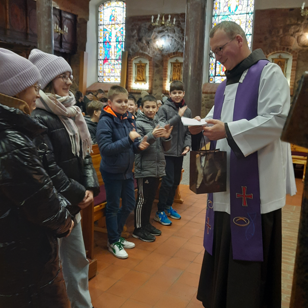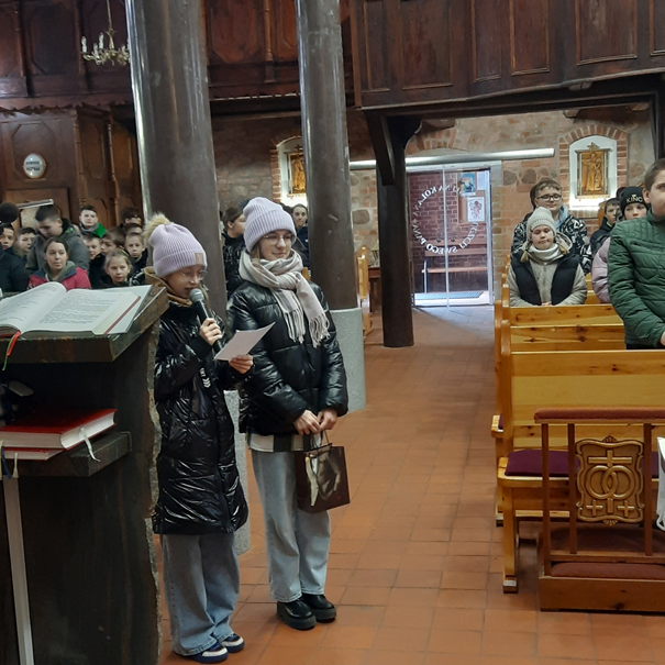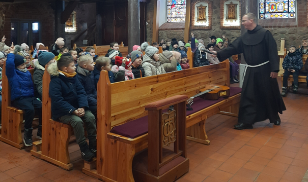 W dniach 27-29 marca 2023 roku uczniowie Szkoły Podstawowej uczestniczyli w corocznych rekolekcjach, które były poprowadzone przez ojców franciszkanów z Wrocławia. Doskonały kontakt Ojca Oskara z dziećmi i młodzieżą można było dostrzec już w pierwszym dniu nauk. Dzieci z zaciekawieniem słuchały opowiadań i z radością uczyły się nowych piosenek granych na gitarze przez ojca Oskara. Były krótkie scenki, w które zaangażowali się także uczniowie klas ósmych. Brawo! Brawo! I o to chodzi, aby być otwartym na Bożą łaskę i z radością przychodzić na spotkania z kochającym Bogiem. Trzy dni spotkań zakończyła uroczysta Msza św. z podziękowaniami od naszych uczniów dla ojców franciszkanów za głoszone nauki rekolekcyjne.
