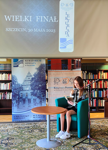 Wyłoniona laureatka etapu szkolnego reprezentowała naszą placówkę w Wielkim Finale Lekturiady w Szczecinie 30 maja 2023 roku.