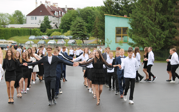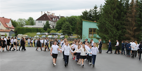 Zwieńczeniem uroczystości było wspólne odtańczenie poloneza przez uczniów klas III i VIII.