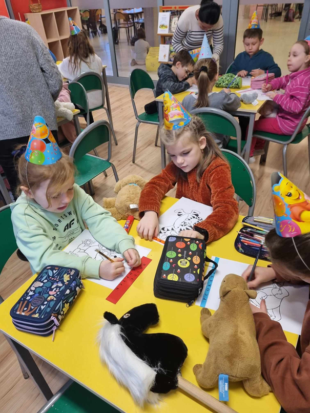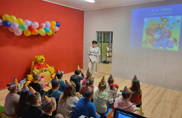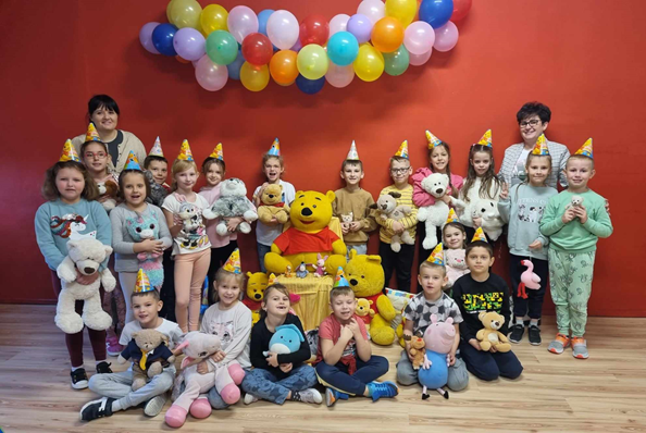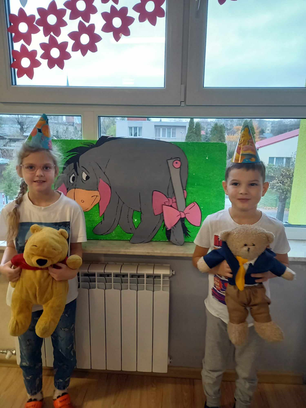 Żółty niedźwiadek w czerwonym kubraczku, ukochany bohater dzieci i dorosłych, w tym roku obchodzi swoje 97 urodziny. Z tej okazji w świetlicy szkolnej uczniowie klas pierwszych szkoły podstawowej uczestniczyli w urodzinowych zajęciach, na których poznali bohaterów oraz prawdziwą historię powstania książki o sympatycznym misiu. Dzieci pokolorowały bohaterów Stumilowego Lasu i z rozsypanki literowej ułożyły ich imiona. Pomogły Kłapouchemu doczepić zgubiony ogon. Radości i śmiechu było co niemiara! Na koniec zajęć każdy otrzymał Dyplom Przyjaciela Pluszowego Misia i małe co nieco.