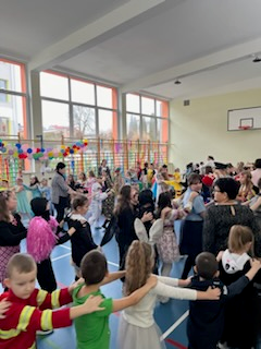 Karnawał to czas zabaw i balów, także dla najmłodszych. Kolorowe stroje, skoczna muzyka – w takiej atmosferze bawiły się dzieci z naszej szkoły 11 stycznia 2024 roku podczas balu karnawałowego. Wszystkie dzieci przebrane w kolorowe stroje wspaniale bawiły się w rytm muzyki, którą zapewnił wodzirej. Podczas balu odbywały się różnorodne zabawy taneczne, konkursy, które przysporzyły wiele radości najmłodszym. Ogłoszono także Króla i Królową Balu. Wybór był bardzo trudny. Ostatecznie Królem Balu został Martin Ptak, natomiast Królową Balu została Eliza Kapuścińska. Bal umożliwił dzieciom i wychowawcom spędzenie czasu w miłej atmosferze, a wspólna zabawa przyniosła wiele radości. Dziękujemy dzieciom i rodzicom za zaangażowanie w przygotowanie pięknych balowych strojów.
