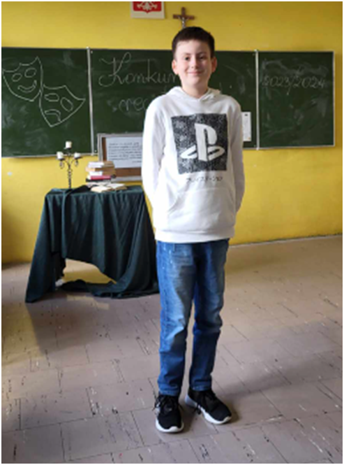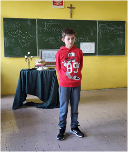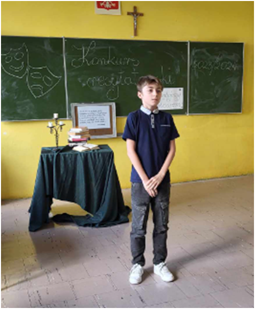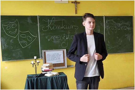 23 lutego 2024 roku odbył się Szkolny Konkurs Recytatorski na poziomie klas IV-VIII, którego celem było rozbudzenie wrażliwości na piękno poezji i prozy, upowszechnianie kultury żywego słowa, kształtowanie języka, wyobraźni i wrażliwości, promowanie talentów recytatorskich oraz popularyzacja literatury pięknej.