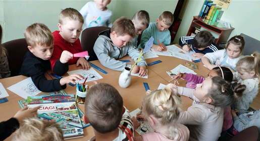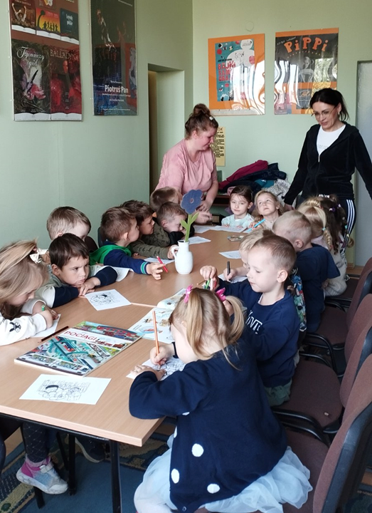 7. i 8. maja dzieci z grup przedszkolnych odwiedziły szkolną bibliotekę.