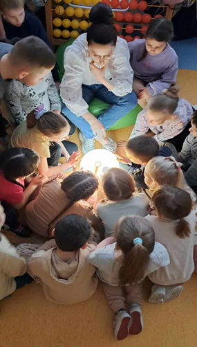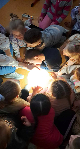 Na jednych z zajęć rozmawialiśmy o ziemi. Omawialiśmy jej wygląd, dlatego też pracowaliśmy z globusem, który na dodatek był podświetlony. Udało nam się znaleźć nasz kraj Polskę. Wiemy jaki kształt ma ziemia oraz, że globus jest jej miniaturą. Szukaliśmy mórz, oceanów, jezior, wysp, kontynentów, a także zwierząt.