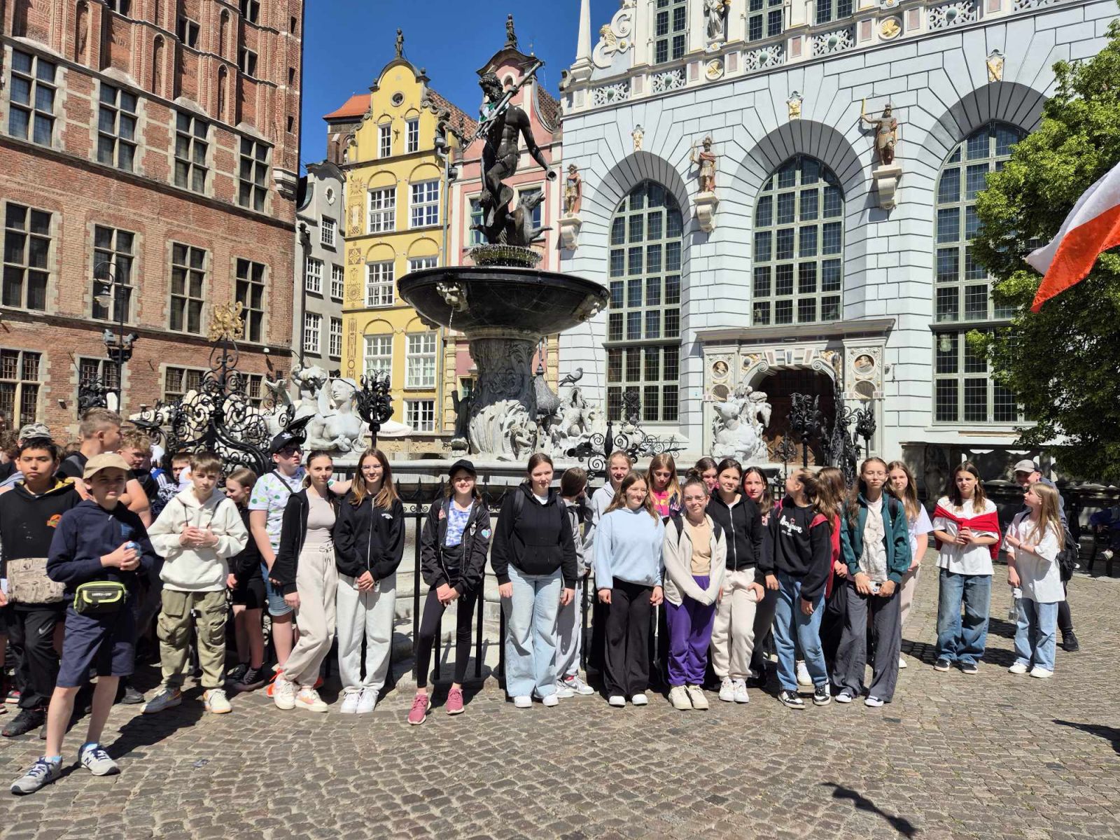 Dnia 15 maja 2024 r. wszystkie klasy szóste pojechały na trzydniową wycieczkę do Trójmiasta. Pierwszego dnia uczniowie w Gdyni odwiedzili Centrum Nauki Eksperyment, gdzie bardzo ciekawie spędzili czas. Po skończonej zabawie zwiedzili Port Morski, w którym zobaczyli wiele przepięknych statków. W Sopocie odbyli długi i przyjemny spacer po słynnym Sopockim Molo. Po intensywnym, lecz bardzo atrakcyjnym zwiedzaniu zakwaterowali się w ośrodku wczasowym w Stegnie. Następnego dnia wszyscy udali się do Malborka, gdzie podzieleni na dwie grupy zwiedzali Zamek Zakonu Krzyżackiego. Po wyczerpujących trzech godzinach spacerowania po zamku, grupa w drodze powrotnej do ośrodka podziwiała Park Krajobrazowy Mierzeja Wiślana. Jeszcze tego samego dnia udali się na Plażę w Stegnie pospacerować przy pięknym zachodzącym słońcu. W trzecim dniu wycieczki uczniowie rano wykwaterowali się z ośrodka i pojechali do Gdańska, gdzie zwiedzili Muzeum II Wojny Światowej oraz piękną Gdańską Starówkę. Udali się również pod Pocztę Polską, Fontannę Neptuna Króla Mórz oraz pod pomnik na Westerplatte.