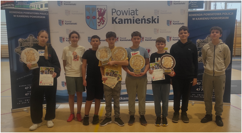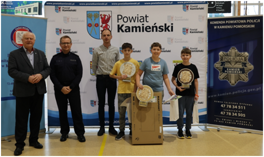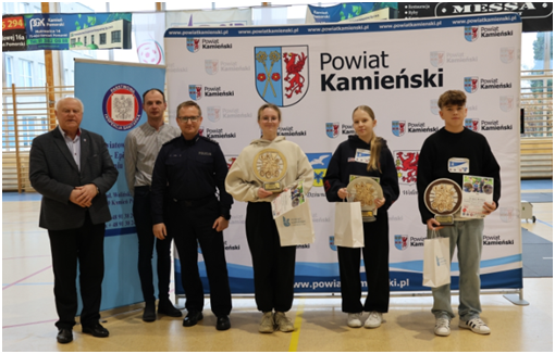 Nagrody najlepszym zawodnikom wręczyli: Józef Malec – Starosta Kamieński, Rafał Bardyn – Zastępca Komendanta Powiatowej Policji w Kamieniu Pomorskim oraz przedstawiciel Powiatowej Stacji Sanitarno-Epidemiologicznej.