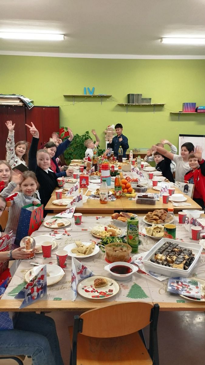 Podczas spotkań nie zabrakło świątecznych potraw – na stołach pojawiły się m.in. pierniki, ciasta, pierogi oraz inne smakołyki przygotowane przez uczniów i Rodziców. Ważnym momentem było również składanie sobie życzeń oraz wręczanie drobnych prezentów, które wywołały wiele uśmiechów i radości.