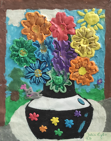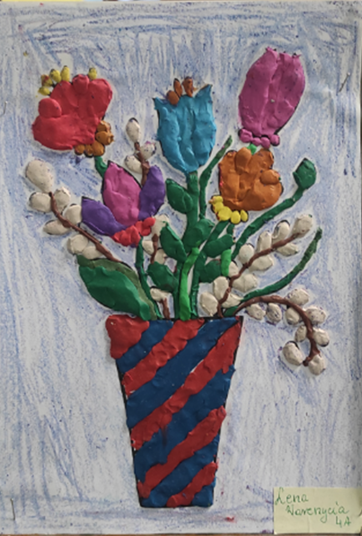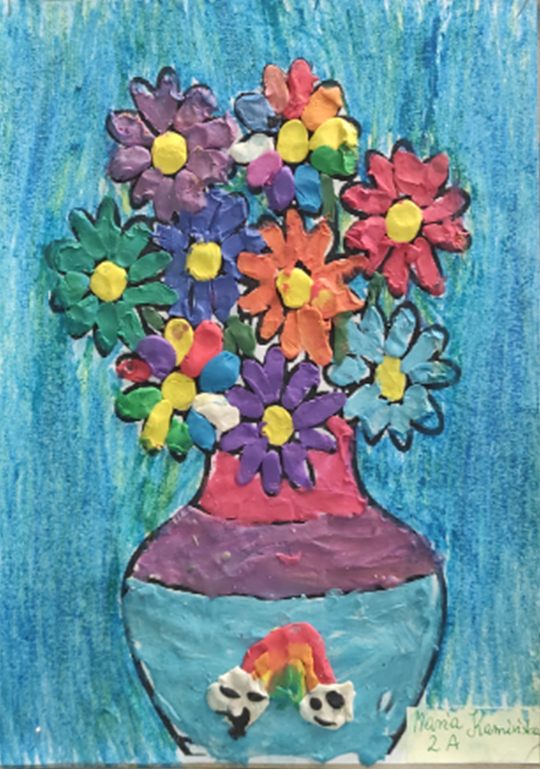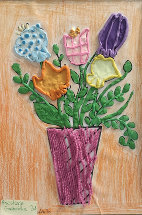 Uczestnicy wykonywali swoje prace, wykorzystując technikę łączoną – plastelinę oraz kredki. Dzięki temu powstały niezwykle barwne i oryginalne kompozycje, w których trójwymiarowe elementy z plasteliny doskonale współgrały z rysunkami wykonanymi kredkami. Każda praca była wyjątkowa i odzwierciedlała indywidualne spojrzenie młodych artystów na temat kwiatów.