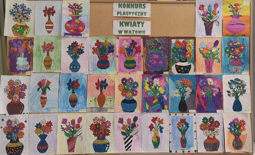 W związku z nadchodzącą wiosną, w świetlicy szkolnej odbył się konkurs plastyczny pod tytułem „Kwiaty w wazonie”, skierowany do uczniów klas I - VI spędzających czas po lekcjach w świetlicy. Celem wydarzenia było rozwijanie kreatywności, wyobraźni oraz wrażliwości estetycznej dzieci.