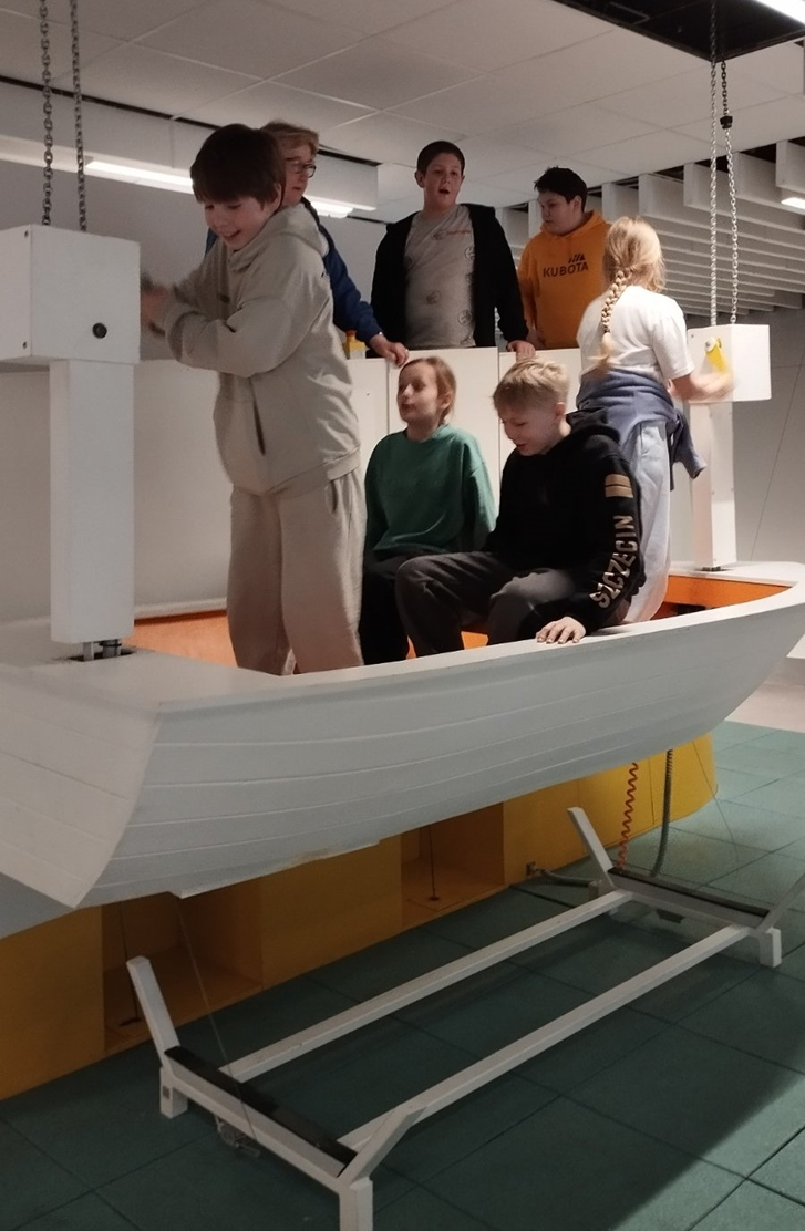 Zabawę rozpoczęliśmy od zwiedzania interaktywnych wystaw MCN. Nasi uczniowie na chwilę zamienili się w marynarzy, konstruktorów i nawigatorów. Największą frajdę sprawiły nam: wielki basen, gdzie testowaliśmy prawa fizyki, budując własne tamy i wiry wodne, węzły żeglarskie, które okazały się nie lada wyzwaniem dla zręczności i symulatory, dzięki którym mogliśmy poczuć się jak na pokładzie prawdziwego statku podczas sztormu.