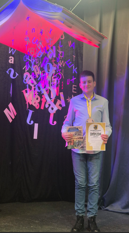 Wyróżnienie dla Adama Adamowicza w Powiatowym Małym Konkursie Recytatorskim.