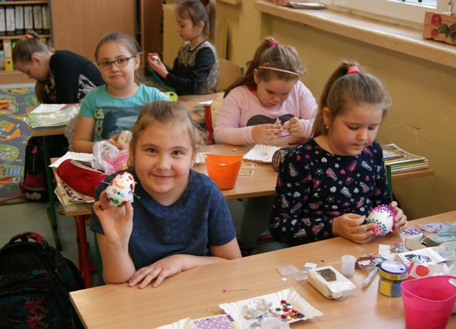 Uczniowie klas młodszych wykonują różne ozdoby wielkanocne, którymi dekorują własne domy. Służą także jako podarunek dla najbliższych.