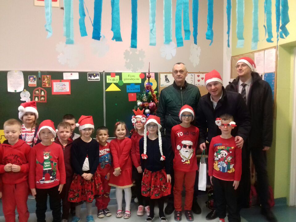 Mieliśmy także gości. Dzieci w przedszkolu i w klasach zerowych odwiedził Burmistrz Golczewa pan Maciej Zieliński oraz Przewodniczący Rady Miejskiej w Golczewie pan Grzegorz Chłopek przynosząc słodkie prezenty.