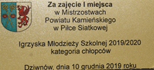 10 grudnia br. w Dziwnowie odbyły się Mistrzostwa Powiatu Kamieńskiego w Piłce Siatkowej. Nasi uczniowie pokonali wszystkie drużyny i zdobyli I miejsce oraz puchar Igrzysk Młodzieży Szkolnej 2019/2020 w kategorii chłopców. Naszą szkołę reprezentowali: Marcin Krukowski, Filip Pabianek, Marek Wawrzyński, Oskar Hałuszko, Adam Chłopek, Kacper Nakoneczny, Piotr Krukowski i Tobiasz Maciejewski.