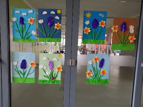 W marcu, w naszej świetlicy zrobiło się kolorowo i słonecznie. Aby przygotować się na przyjście wiosny, które nastąpi już 21 marca, dzieci uczęszczające na zajęcia świetlicowe wykonały wiosenne prace plastyczne. Wykorzystując kolorową bibułę, płatki kosmetyczne, wykałaczki i kolorowy papier wyczarowały trójwymiarowe hiacynty, żonkile i śnieżyczki, które zdobią wejście do świetlicy. Podczas wykonywania prac panowała miła i wesoła atmosfera, a wiosenne kolory wywołały uśmiech na twarzach dzieci.