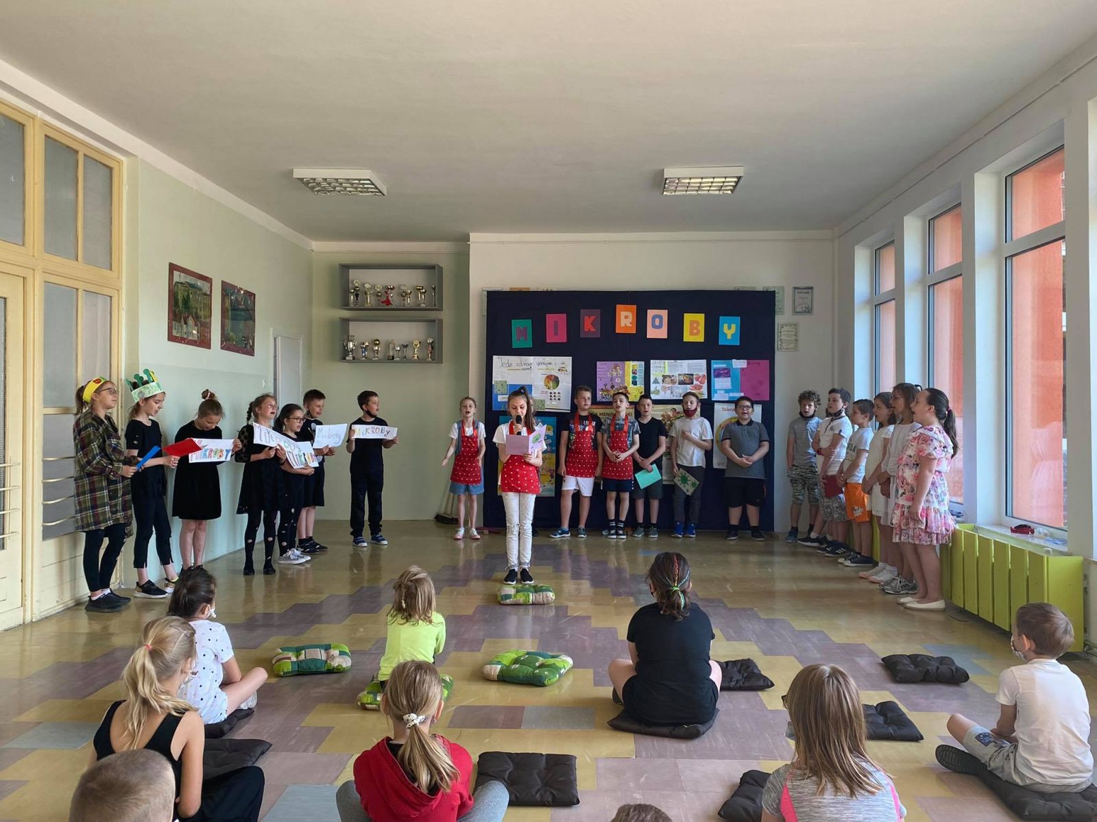 W środę i czwartek – 9 i 10 czerwca 2021 roku uczniowie klasy 3 b wraz z wychowawczynią przedstawili inscenizację pod tytułem „Mikroby”. Przedstawienie zobaczyły inne klasy 0 – 3. Uczniowie w przystępnej formie ukazywali, jak ważne są nawyki higieniczne w walce z chorobami. Szczególną uwagę zwrócili na mycie rąk, zasłanianie się podczas kichania i odpowiednią dietę. Nawiązali w ten sposób do aktualnej pandemii. Ich wystąpienie miało charakter promujący zdrowie. Przedstawienie spotkało się z aprobatą widzów. Na pewno zapamiętają tę ciekawą lekcję zdrowia na długo.