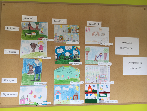 W czerwcu 2021 roku, zorganizowano w klasach I-III, konkurs plastyczny „Opiekuję się moim psem”. Celem konkursu było zachęcanie dzieci do prawidłowej opieki nad zwierzętami, poznanie i przypomnienie zasad właściwej pielęgnacji psa, promowanie działań na rzecz zwierząt. Wyróżniono i nagrodzono po cztery prace na poziomie każdej klasy.